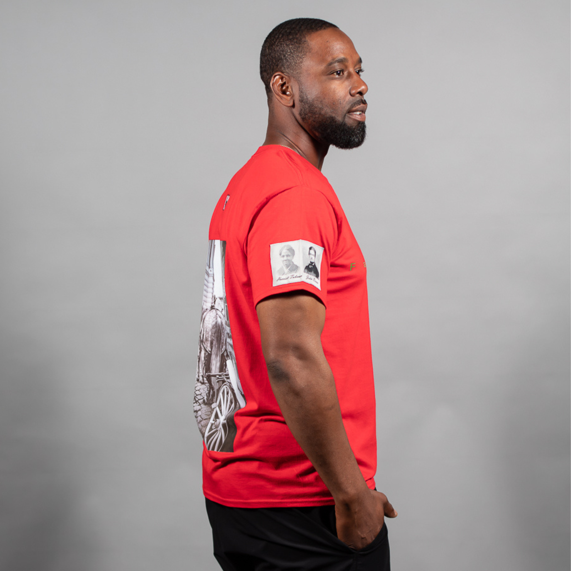 This "Lonely Road" addition graphic tee is perfect for all seasons as it highlights American history. Recognizing Harriet Tubman and John Brown, two historical and heroic American figures.
